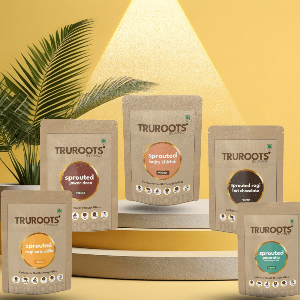 Instead of meal-prepping 20 containers or spending half your salary on health cafes, you can keep a few sprouted millet premixes from Truroots by Vrinda in your pantry and whip up a fresh, nourishing snack in minutes.