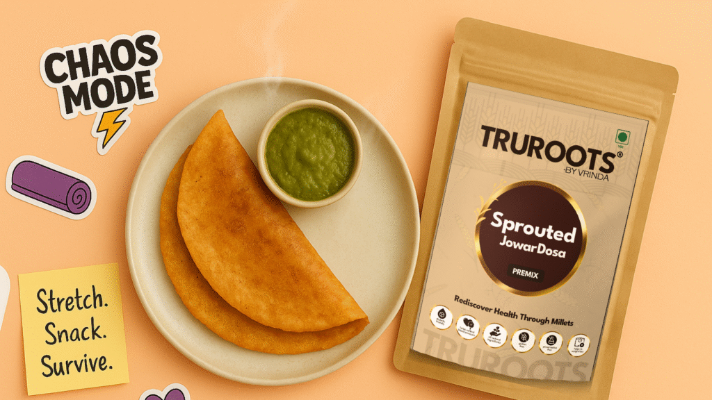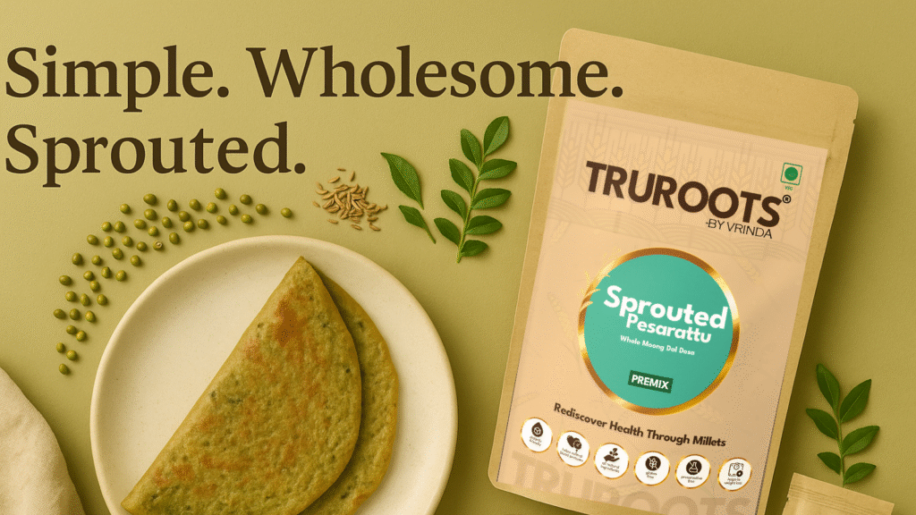 You can explore options like Sprouted Jowar Dosa Premix and Sprouted Pesarattu on Truroots by Vrinda’s website.